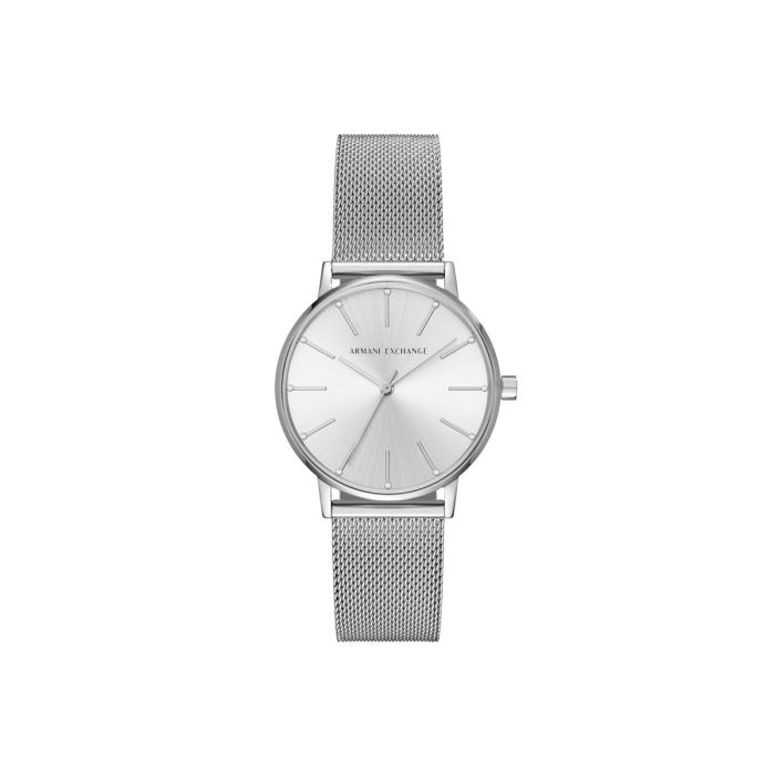 Zegarek Armani Exchange AX5535 to damski czasomierz w minimalistycznym stylu. Koperta o średnicy 36 mm z wysokiej jakości stali została połączona ze stalową bransoletą typu Mesh. Całość została wykończona powłoką PVD w srebrze. Tarczę ozdobiono kryształami, które dodają blasku temu modelowi. Zegarek został wyposażony w dokładny mechanizm kwarcowy zasilany baterią. Ten model posiada wodoszczelność 50M, która pozwala na ograniczony kontakt z wodą, np. prysznic lub kąpiel w wannie.