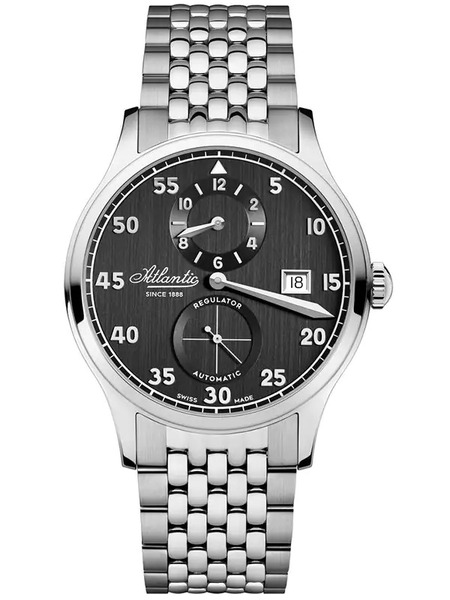 Daj wyraz swojego poczucia stylu i gustu razem z kultową marką Atlantic. Przedstawiamy kolekcję zegarków Atlantic Regulator, wyjątkową propozycję dla mężczyzn ceniących sobie elegancję i nieszablonowe rozwiązania. Zegarki te wyróżniają się układem tarczy typu Regulator, który polega na rozdzieleniu wskazówek godzin, minut i sekund na osobne sub-tarcze, dzięki czemu cyferblaty modeli tej serii są czytelne i oryginalne. Jest to rodzaj tarczy zegara, na której wskazówka minutowa znajduje się na tarczy głównej, a wskazówka godzinowa na mniejszej sub-tarczy, zwykle umieszczoną pod godziną dwunastą. Został wynaleziony w XVIII wieku przez francuskiego mistrza zegarmistrzowskiego Louisa Berthouda. Pomysł na taką tarczę zegara opiera się na specyficznym sposobie mierzenia czasu, który polega na uważnym śledzeniu mijających minut. Podając obecny czas, zazwyczaj najpierw podajemy minuty, a potem godziny, np.: dwadzieścia cztery po trzeciej. Pierwszym masowo produkowanym zegarkiem na rękę z taką tarczą był Chronoswiss z 1987 roku. Zegarki Atlantic Regulator to zegarki mogące pochwalić się sygnaturą Swiss Made, co oznacza, że spełniają wysokie standardy jakości i precyzji.