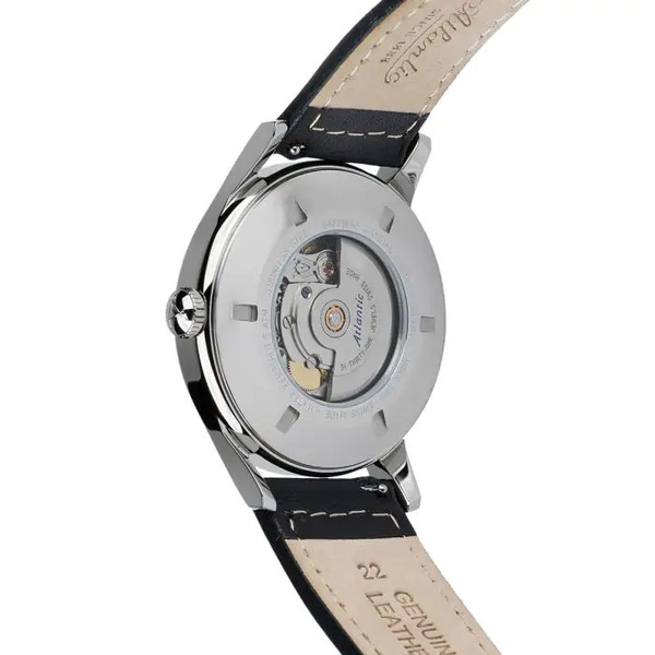 Zegarek Atlantic Regulator Automatic 53781.41.43 to luksusowy czasomierz marki Atlantic, który zachwyca entuzjastów elegancji i stylu vintage. Napędzany przez mechanizm automatyczny Sellita SW266 z 31 kamieniami łożyskującymi, ma rezerwę chodu wynoszącą 38 godzin. Jego charakterystyczną cechą jest szara tarcza, na której każda wskazówka ma oddzielną powierzchnię, dzięki czemu zapewnia doskonałą czytelność. Chroniona jest przez szkło szafirowe, a koperta wykonana jest ze stali szlachetnej 316L, zapewniając wyjątkową wytrzymałość. Zegarek jest montowany na czarnym pasku z wysokiej jakości skóry naturalnej, zabezpieczonym przez zapięcie motylkowe.