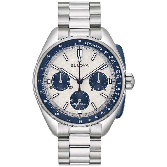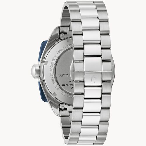 Zegarek męski Bulova Lunar Pilot jest napędzany opatentowanym przez firmę Bulova mechanizmem kwarcowym High Perfomance Quartz o wysokiej precyzji. Rezonuje on z częstotliwością 262 kHz, co zapewnia niezrównaną dokładność i pozwala na obszerną wskazówkę chronografu i biegnącą wskazówkę sekundową.