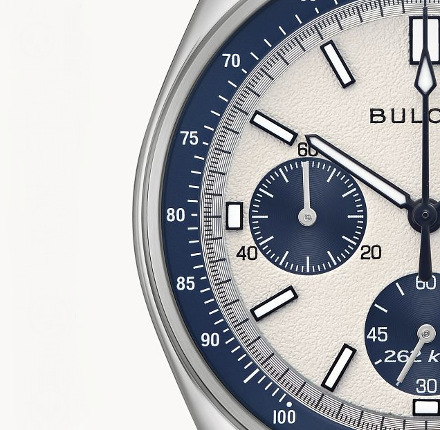 Tarcza została zaprojektowana w stylu pandy w kolorach srebrno-niebieskim. Cyferblat został otoczony niebieskim pierścieniem tachymetru. Tarczę przyozdabia napis Bulova w stylu retro oraz trzy subtarcze. Ich funkcje to: licznik sekund chronografu znajdujący się na godzinie 6, wskazówka sekundnika na godzinie 3 oraz 60-minutowa tarcza chronografu na godzinie 9.