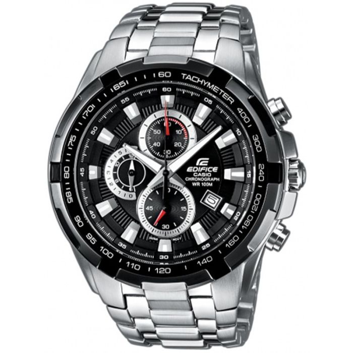 CASIO Edifice Classic EF-539D-1AVEF to model przeznaczony dla mężczyzn poszukujących stonowanego, ale jednocześnie sportowego zegarka o wyjątkowym designie, gdzie dopracowanie szczegółów w harmonijny sposób łączy się z najnowszą technologią. Koperta oraz bransoleta zostały wykonane z wysokiej jakości stali nierdzewnej, która charakteryzuje się wysoką odpornością na warunki atmosferyczne. Na ciemnej tarczy umieszczono elementy pokryte warstwą Neobrite, dzięki czemu możliwy jest odczyt wskazań w ciemnościach. Zegarek wyposażono w praktyczny datownik wskazujący aktualny dzień miesiąca oraz stoper z dokładnością pomiaru do 1/1 sekundy i zakresem pomiaru do 12h. Precyzyjny mechanizm kwarcowy jest zasilany baterią, która przy standardowym użytkowaniu zapewnia pracę przez okres 2 lat. Wodoszczelność 100M i zakręcany dekiel pozwalają na swobodny kontakt z wodą.