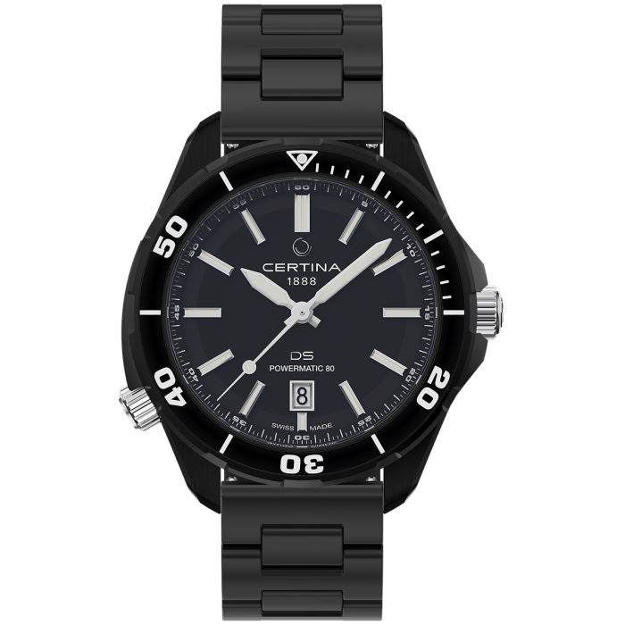 Certina DS+ Black Edition 43mm C041.407.39.051.00 jest napędzany automatycznym mechanizmem Powermatic 80.611, który oferuje imponującą rezerwę chodu wynoszącą aż 80 godzin. To jeden z najdłuższych czasów pracy mechanicznych werków w tej klasie zegarków, co zapewnia niezawodność i długotrwałą precyzję.