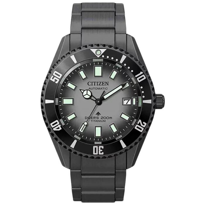 Czarna koperta tego zegarka typu diver została umocowana na solidnej bransolecie, utrzymanej w tej samej barwie. Do wykonania obydwu elementów wykorzystano tytan. Ten rodzaj materiału jest niezwykle twardy i odporny na różnego rodzaju uszkodzenia. Jest także lekki, co dodatkowo zwiększa komfort noszenia. Na kopercie czasomierza umieszczono obrotowy bezel z naniesioną skalą, dzięki któremu możesz odmierzać spędzony pod wodą czas.