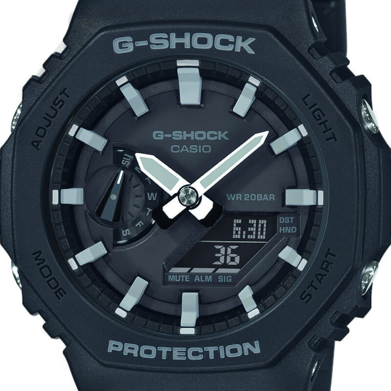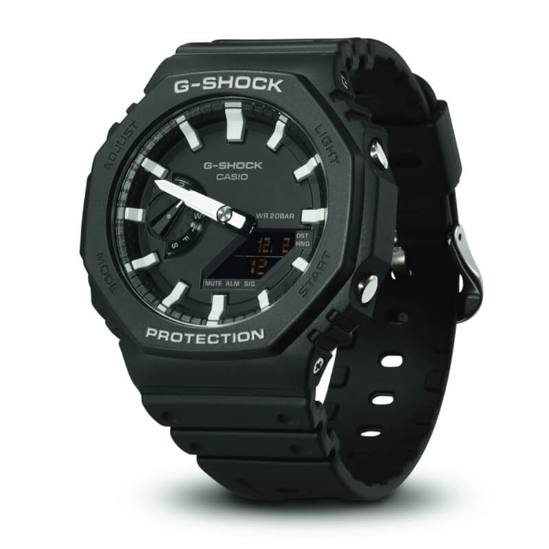 G-Shock GA-2100-1AER to zegarek, na którym można polegać. Wyposażono go w precyzyjny mechanizm oraz dodatkowe opcje stopera i timera, które będą przydatne miłośnikom aktywności fizycznej. Funkcjonalność zegarka podkreślają również kalendarz automatyczny, możliwość ustawienia do 5 alarmów czy opcja wyboru między 12-godzinnym i 24-godzinnym formatem wyświetlania czasu. Z kolei funkcja czasu światowego umożliwia sprawdzenie aktualnego czasu wielu różnych strefach czasowych.