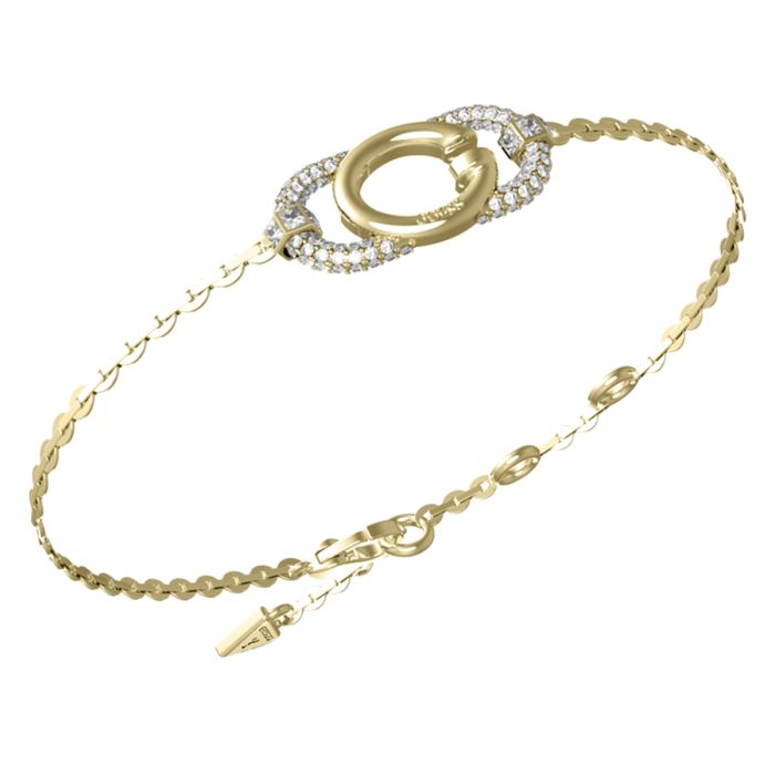 Bransoletka Guess In My Heart JUBB04510JWYGS to elegancki dodatek, który wyróżnia się subtelnym urokiem i wysoką jakością wykonania. Wykonana z wytrzymałej stali nierdzewnej, bransoletka ma piękny złoty kolor, który podkreślają błyszczące kryształki, umieszczone na ozdobnej zawieszce.