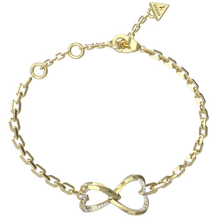 Bransoletka Guess Mon Amour JUBB04618JWYGS to subtelny i elegancki dodatek, który doda uroku każdej kobiecej stylizacji. Wykonana z połyskującej stali szlachetnej, ozdobiona jest błyszczącymi cyrkoniami, które podkreślają jej delikatny, a zarazem wyrazisty charakter. Motyw splatających się serduszek nadaje jej romantycznego akcentu, czyniąc ją idealnym wyborem na różne okazje.
