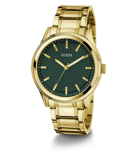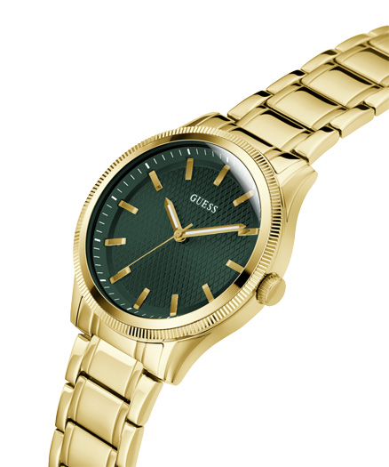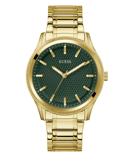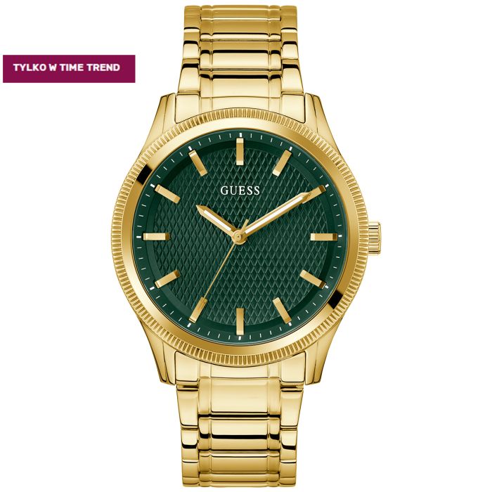 GUESS GW0626G2 to zegarek męski z zieloną tarczą. Struktura tarczy w kształcie rombów dodaje męskości i wyjątkowości temu zegarkowi Guess. W połączeniu ze złotymi indeksami oraz wskazówkami tarcza wygląda dostojnie, klasycznie oraz elegancko. Ponadto, wskazówki pokryte są powłoką luminescencyjną, co ułatwia odczytanie godzinę również w nocy za sprawą tego złotego męskiego zegarka Guess.