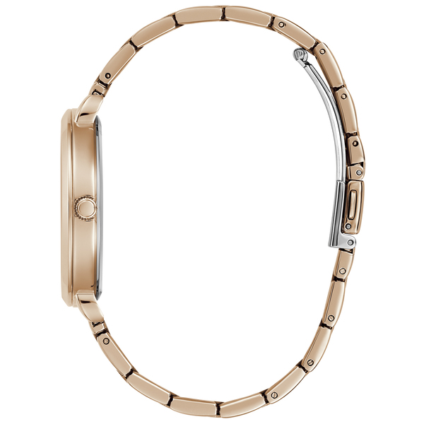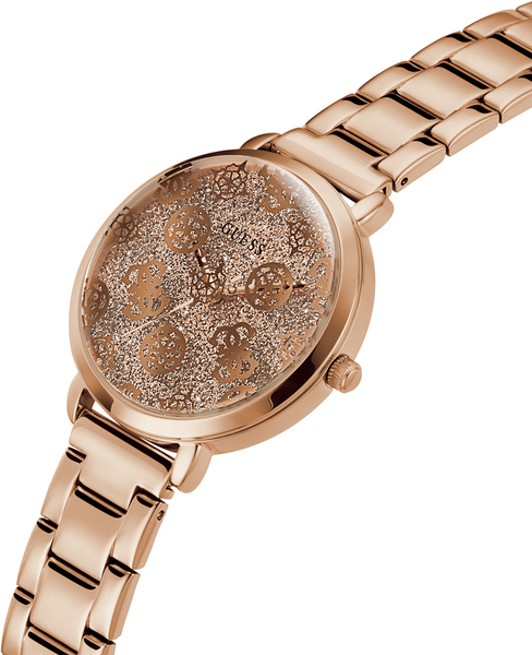 Zegarek GUESS GW0670L4 w kolorze różowego złota wyposażony jest w elegancką kopertę oraz pasującą bransoletę. Te elementy tworzą harmonijną całość, która podkreśla unikalność zegarka. Wykonane z wysokiej jakości materiałów zapewniają trwałość i elegancję.