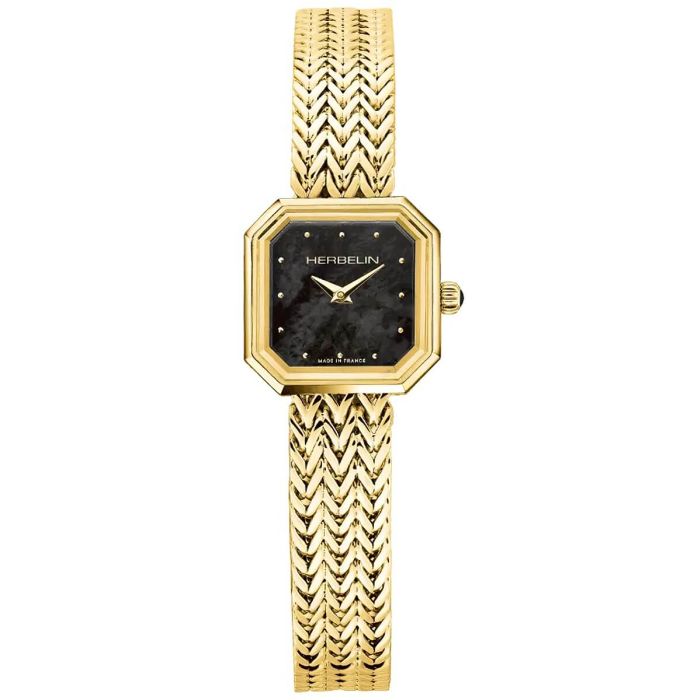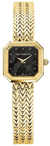 Elegancki zegarek damski HERBELIN 17436BP49 zachwyca nie tylko swoim unikatowym designem. Uwagę przyciąga także połączenie czarnego cyferblatu ze złotą bransoletą, które nadaje mu ekskluzywny charakter. Zegarek został wykonany z najwyższej jakości materiałów. Idealnie sprawdzi się jako uzupełnienie oficjalnych stylizacji.