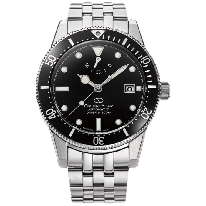 Męski zegarek sportowy Orient Star Olimpic Diver posiada czarną tarczę z białymi, czytelnymi indeksami.Umieszczony na godzinie trzeciej datownik wskaże Ci na aktualny dzień miesiąca. Z kolei znajdujący się na godzinie dwunastej wskaźnik informuje o poziomie rezerwy ruchu zegarka. Całości kompozycji dopełniają białe wskazówki. Do ochrony tarczy wykorzystano szafirowe szkło, które twardością przewyższa jedynie diament, dzięki czemu jest niezwykle odporne na zarysowania.