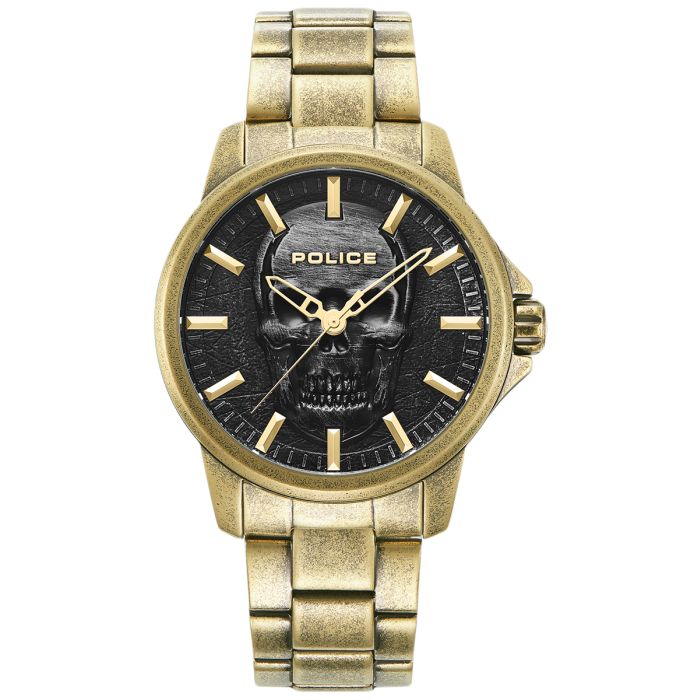 Koperta i bransoleta zegarka Police Mensor PEWJG0024401 są wykonane ze stali szlachetnej w złotym kolorze, który celowo został postarzany, aby nadać zegarkowi niepowtarzalnego uroku. Koperta ma średnicę 44 mm i grubość 12 mm, co sprawia, że zegarek jest solidny i dobrze leży na nadgarstku. Bransoleta jest regulowana i ma zapięcie typu motylkowego, które zapewnia wygodę i bezpieczeństwo noszenia.