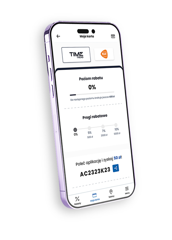 Aplikacja umożliwia wygenerowanie kodu polecającego. Jeżeli używając Twojego kodu polecającego, Twoi znajomi zainstalują aplikację to otrzymasz od nas dodatkowy bonus w postaci kolejnego kuponu na -50 zł na zakupy powyżej 700 zł. Taki kupon możesz otrzymać aż trzy razy, więc jak się postarasz to możesz oszczędzić 150 zł!