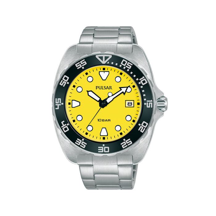 Sportowy zegarek Pulsar PS9675X1 przeznaczony dla mężczyzn. Jest to doskonała propozycja dla osób, które poszukują zegarka do bardziej formalnego stroju. Koperta o średnicy 45 mm została wykonana z wysokiej jakości stali szlachetnej. Połączono ją z gustowną, stalową bransoletą. Tak dobrane elementy tworzą spójną całość. Żółta tarcza z wyraźnymi indeksami sprawia, że odczyt godziny jest łatwy i szybki. Zastosowany precyzyjny mechanizm kwarcowy wyposażono w datownik wskazujący aktualny dzień miesiąca. Cyferblat przykrywa odporne szkło mineralne. Wodoszczelność tego modelu to 100M co pozwala na pływanie i nurkowanie bez akwalungu.