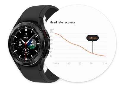 Galaxy Watch4 Classic dokonuje pomiaru tętna powysiłkowego, żeby sprawdzić czy regeneracja odbyła się w odpowiednim tempie.