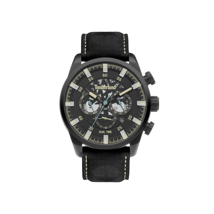 Zegarek męski Timberland TDWGF2100601 to jeden z modeli trzeciej edycji serii HENNIKER. Zegarek skierowany do mężczyzn, którzy preferują luźny styl outdoor’owy. Koperta w tym modelu została wykonana ze stali nierdzewnej. Marka Timberland swoje zegarki kieruje do ludzi którzy prowadzą aktywny i ekologiczny tryb życia. Wszystkie produkty są precyzyjnie wykonane co odnosi się bezpośrednio do DNA marki. Kopertę zestawiono z paskiem z naturalnej skóry w czarnym kolorze. Ciemna tarcza została przykryta szkłem mineralnym, które ma wysoką odporność na pęknięcia. Wodoszczelność tego zegarka pozwala na niewielki kontakt z wodą np. prysznic(50M). Na tarczy zamieszczono logo marki oraz rozbudowany datownik – dzień tygodnia i miesiąca, a także funkcję dual time, która umożliwia ustawienie drugiego czasu. Średnica koperty wynosi 46 mm x 53 mm.