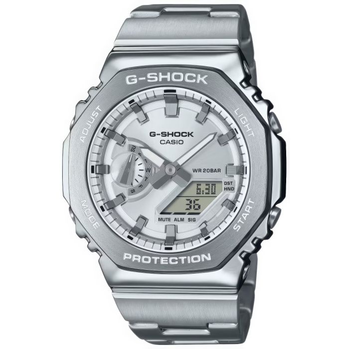 Casio G-Shock GM-2110D-7AER to wyjątkowy model z linii G-STEEL, będący połączeniem analogowego i cyfrowego wyświetlacza w wytrzymałej, metalowej oprawie. Ten elegancki, a zarazem niezwykle solidny zegarek jest doskonały zarówno na co dzień, jak i w bardziej formalnych okolicznościach. Jego wytrzymała konstrukcja, odporność na wstrząsy oraz stylowy design czynią go idealnym wyborem dla aktywnych mężczyzn ceniących wysoką funkcjonalność.