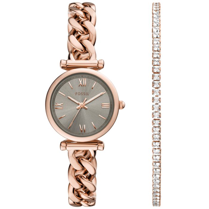 Fossil ES-5378SET Rose Gold Stainless Steel 28mm to elegancki i biżuteryjny zegarek damski, idealny na wyjątkowe okazje i codzienne stylizacje. W zestawie prezentowym, ten czasomierz to znakomity pomysł na upominek dla kobiet ceniących wyrafinowany design i ponadczasową elegancję. Dzięki kolorowi różowego złota oraz perfekcyjnym wykończeniom, model ten staje się zarówno stylowym dodatkiem, jak i funkcjonalnym narzędziem do mierzenia czasu.
