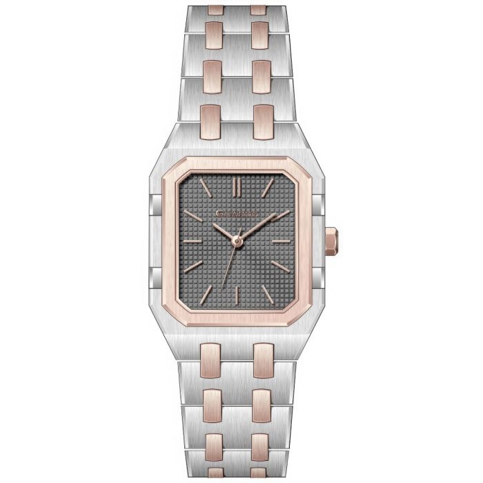 Koperta zegarka Guardo 012735-4 wykonana jest z wysokiej jakości stali szlachetnej 316L, co zapewnia trwałość i wytrzymałość. Koperta o wymiarach 29 x 39 mm jest pokryta nowoczesną powłoką w eleganckim kolorze, co dodaje jej wyjątkowego charakteru. Bransoleta wykonana ze stali szlachetnej łączy w sobie kolor srebrny i różowe złoto, co tworzy niepowtarzalny efekt wizualny. Bransoleta jest nie tylko elegancka, ale również bardzo wygodna, dzięki czemu zegarek nosi się z przyjemnością przez cały dzień.