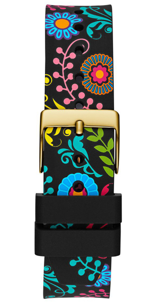 Wielokolorowa tarcza zegarka GUESS Calaverta GW0754L1 to doskonały wybór dla osób, które cenią sobie kreatywność i wyjątkowy wygląd. Tarcza jest bogata w kolory, które świetnie komponują się z subtelnymi, klasycznymi analogowymi wskazówkami. Dzięki temu zegarek jest zarówno atrakcyjny wizualnie, jak i praktyczny, oferując wygodny sposób odczytu godziny w każdej sytuacji. Szkło mineralne stosowane w tym modelu jest odporne na drobne zarysowania, co zapewnia długotrwałą estetykę zegarka. Dodatkowo, materiał ten charakteryzuje się giętkością, co chroni szkiełko przed pęknięciami w trakcie codziennego użytkowania.