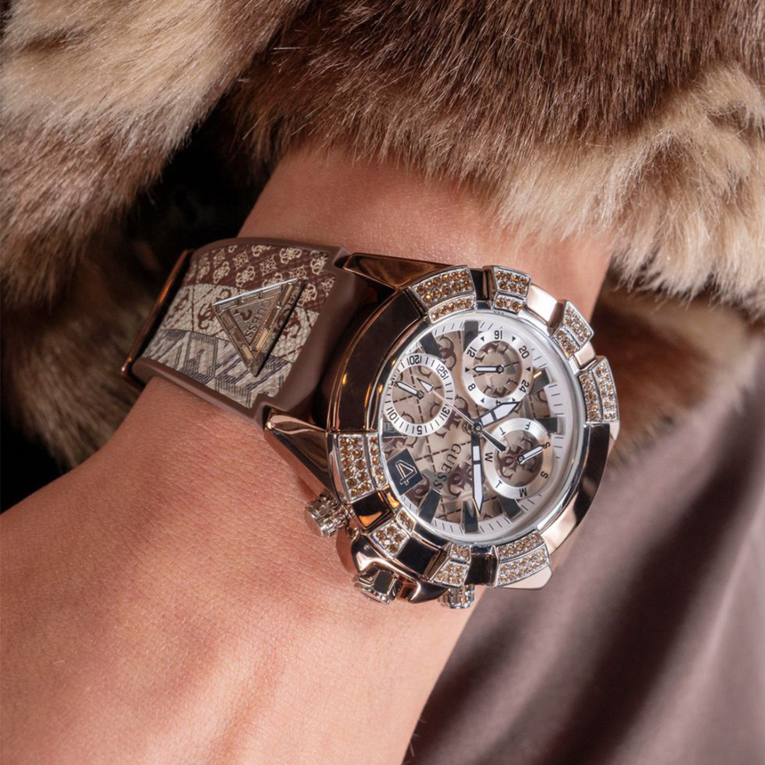 Zegarki Guess pojawiły się na rynku modowym w 1983 roku, niedługo po powstaniu marki. Charakterystyczne logo w kształcie odwróconego trójkąta jest dzisiaj rozpoznawalne na całym świecie. Zegarki Guess odpowiadają na najnowsze trendy w modzie i zaspokajają najbardziej wyśrubowane oczekiwania użytkowników. Zegarki Guess cechują się odważną stylistyką. Każdy model ma swój unikalny wzór, zgodny z najnowszymi i najgorętszymi trendami w modzie. Charakterystyczny design oraz materiały najwyższej jakości powodują, że marka jest bardzo często wybierana przez osoby, które chcą uzupełnić swój look stylowym zegarkiem.