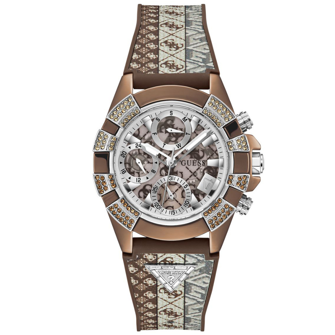 Z okazji 40-lecia marki GUESS, przedstawiamy zegarek, który jest prawdziwą ikoną stylu i mody. GUESS GW0813L2 to nie tylko wyjątkowy model, ale także symbol czterdziestu lat innowacji, elegancji i wyrazistego designu. W tym jubileuszowym zegarku połączono trzy charakterystyczne wzory logo GUESS, tworząc design, który od razu przyciąga wzrok i wyróżnia się na tle innych.
