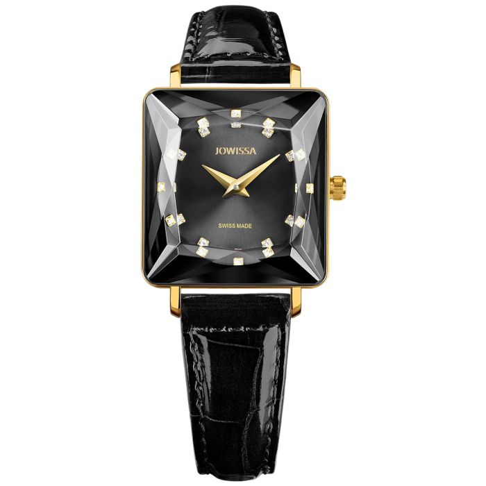 Jowissa Facet Princess Swiss Ladies Watch J8.060.M to wyjątkowy zegarek, który zachwyca swoją elegancją i kreatywnym designem. Wykonany w Szwajcarii, ten czarny zegarek o kwadratowej tarczy i wymiarach 25 mm x 27,3 mm jest idealnym dodatkiem dla kobiet ceniących sobie luksus i oryginalność. Diamentowe szlifowanie kryształu w kształcie księżniczki sprawia, że zegarek lśni w każdym świetle, dodając blasku każdemu strojowi.