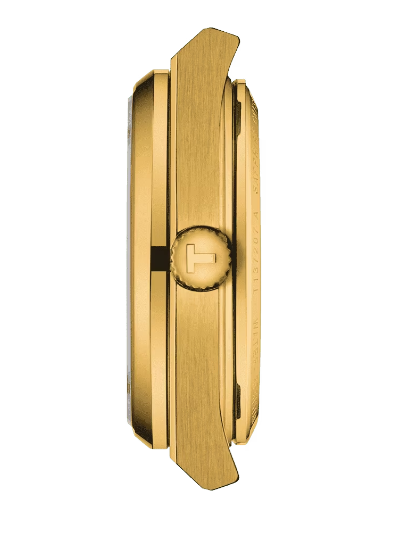 Koperta o kształcie beczkowatym wykonana jest ze stali szlachetnej, a jej złoty odcień nadaje zegarkowi wyjątkowego charakteru. Grubość koperty wynosząca 10.9 mm zapewnia dobrą widoczność na nadgarstku, a przezroczysty dekiel pozwala podziwiać wewnętrzny mechanizm. Satynowo wykończona stalowa bransoleta z zapięciem motylkowym jest nie tylko trwała, ale także wygodna w noszeniu.