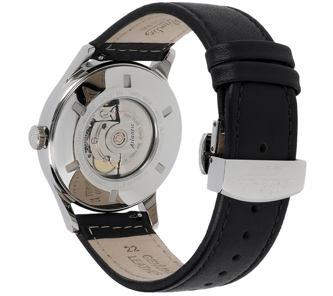 Za fenomenalną precyzję działania zegarka Atlantic Regulator Automatic 53781.41.43 odpowiada mechanizm automatyczny Sellita SW266, osadzony na 31 kamieniach łożyskujących. z rezerwą chodu wynoszącą 38 godzin.