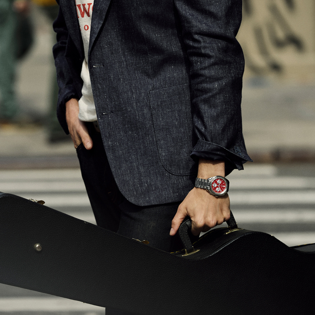 Na tle głębokiej, czerwonej tarczy znajdują się wyraziste indeksy i wskazówki, które gwarantują łatwy odczyt czasu w każdych warunkach. Detale w postaci subtelnych kontrastów kolorystycznych dodają mu charakteru i wyjątkowości. Tarcza chroniona jest przez szkło szafirowe, które cechuje się wysoką odpornością na zarysowania i zapewnia doskonałą przejrzystość. Dzięki temu zegarek długo zachowuje nieskazitelny wygląd.