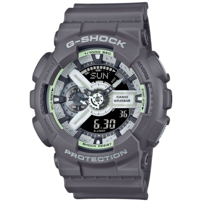 Zegarek CASIO G-SHOCK GA-110HD-8AER to kwintesencja wytrzymałości i stylu. Jego unikatowy design inspirowany jest ukrytymi talentami, które rzadko ujawniamy. Szarość koperty symbolizuje tajemniczość, a fosforescencyjne elementy dodają zegarkowi wyjątkowego blasku w ciemności.