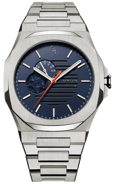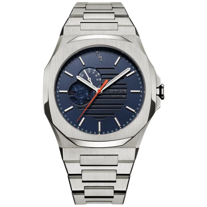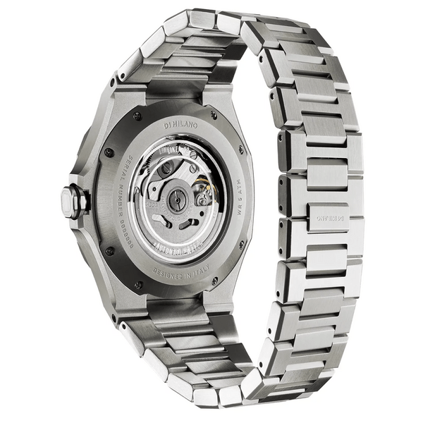D1 MILANO LNBJ01 ma tytanową kopertę o niestandardowym kształcie i średnicy 41,5 mm. Koperta jest przeszklona przezroczystym deklem, który umożliwia oglądanie mechanizmu od tyłu. Wodoszczelność zegarka wynosi 50 metrów, co oznacza, że można go nosić podczas mycia rąk lub w czasie deszczu. Zegarek ma również tytanową bransoletę z zapięciem motylkowym, która jest regulowana i dopasowuje się do nadgarstka.