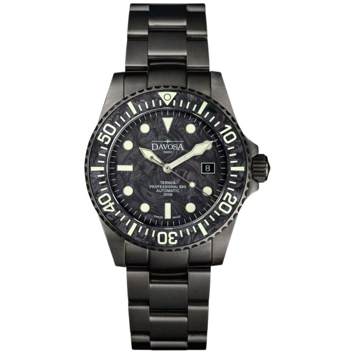DAVOSA Ternos Professional 68H Carbon Limited Edition 161.539.50 to wyjątkowy zegarek męski stworzony z myślą o miłośnikach precyzyjnych i niezawodnych czasomierzy, które sprawdzają się w najbardziej wymagających warunkach. Limitowana edycja modelu wyróżnia się nowoczesnym, taktycznym stylem oraz zaawansowanymi technologiami, co czyni go idealnym wyborem dla aktywnych mężczyzn, poszukujących zarówno funkcjonalności, jak i unikalnego designu. Wodoszczelność na poziomie 300 m pozwala na profesjonalne zastosowania nurkowe.