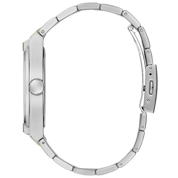 Bransoleta zegarka wykonana jest ze stali szlachetnej, co gwarantuje jej wytrzymałość i elegancki wygląd. Złote i srebrne elementy bransolety tworzą harmonijną całość, dodając zegarkowi wyjątkowego stylu. Zapięcie zatrzaskowe z dodatkowym zabezpieczeniem zapewnia pewność noszenia i łatwość zakładania oraz zdejmowania zegarka. Bransoleta jest regulowana, co umożliwia dopasowanie jej do indywidualnych potrzeb użytkownika.
