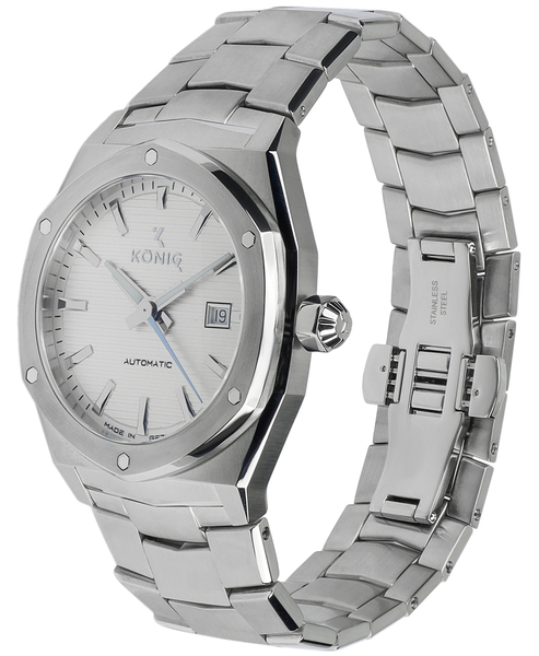 Zegarki Koenig cechuje niemiecka produkcja oraz szwajcarski mechanizm. Marka Koenig to gwarancja autentyczności, niezawodności oraz precyzji. Do stworzenia tych wyjątkowych projektów użyto materiałów o wysokiej jakości takich jak włókno węglowe, szafir, stal szlachetna oraz kamienie szlachetne m.in. takie jak diamenty i szmaragdy.
