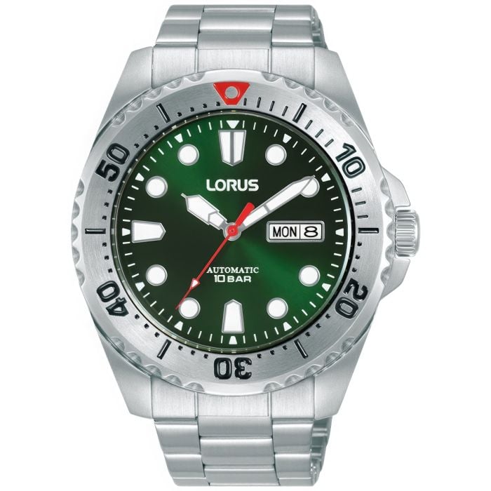 LORUS RL475BX9 to elegancko zaprojektowany męski zegarek, który łączy sportowy styl z funkcjonalnością i wysoką jakością wykonania. Wytrzymała stalowa bransoleta, szeroka, 44-milimetrowa koperta oraz unikalna zielona tarcza sprawiają, że model ten przyciąga wzrok i doskonale sprawdza się zarówno na co dzień, jak i w bardziej dynamicznych okolicznościach. Wyposażony w automatyczny mechanizm Y676, zegarek RL475BX9 oferuje wygodę użytkowania i dbałość o detale, która zadowoli najbardziej wymagających użytkowników.