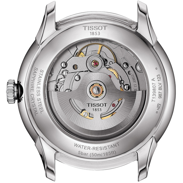 Całość koperty zegarka Tissot Chermin des Tourelles Powermatic 80 T139.807.11.061.00 umieszczono na srebrnej bransolecie wykonanej ze stali szlachetnej 316L, gwarantującej wyjątkową odporność na uszkodzenia mechaniczne, czy też na pojawianie się korozji.